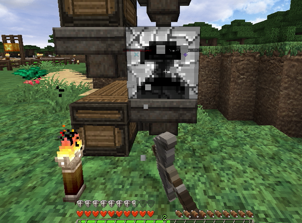 (※後日Quarryブロックの設定から、ホッパーが使える事がわかりました)