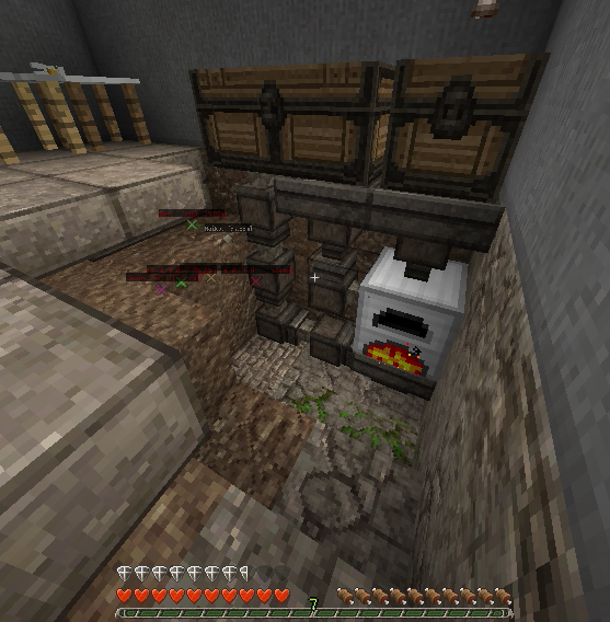 金粉・鉄分はかまどにかけるとインゴットに精錬できますので、都合一個の鉱石から2個のインゴットが作れるようになる、ということになります。