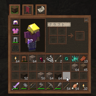 鉄はもうないので、あり物で装備をすませる。