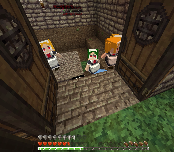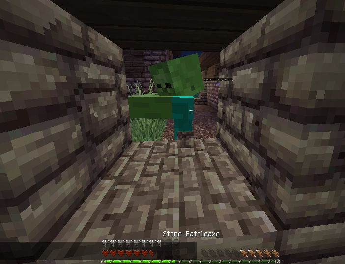 ゾンビがドアを叩いていたので店の前を土ブロックで封鎖して安全確保。