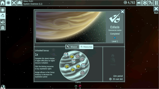 画像では12分に1回の収穫ですが、銀河系毎に設置されている『Embassy(領事館)』にOfficerを派遣することでこの時間を短縮させる事ができます。
