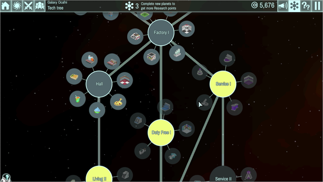 Reserch Pointとお金を使用して新しい技術を習得します。習得する事により新しい部屋やオブジェクトが置けるようになります。また、新しい部屋にあった消耗品(食事や土産など)も作成できます。