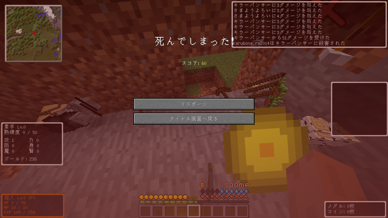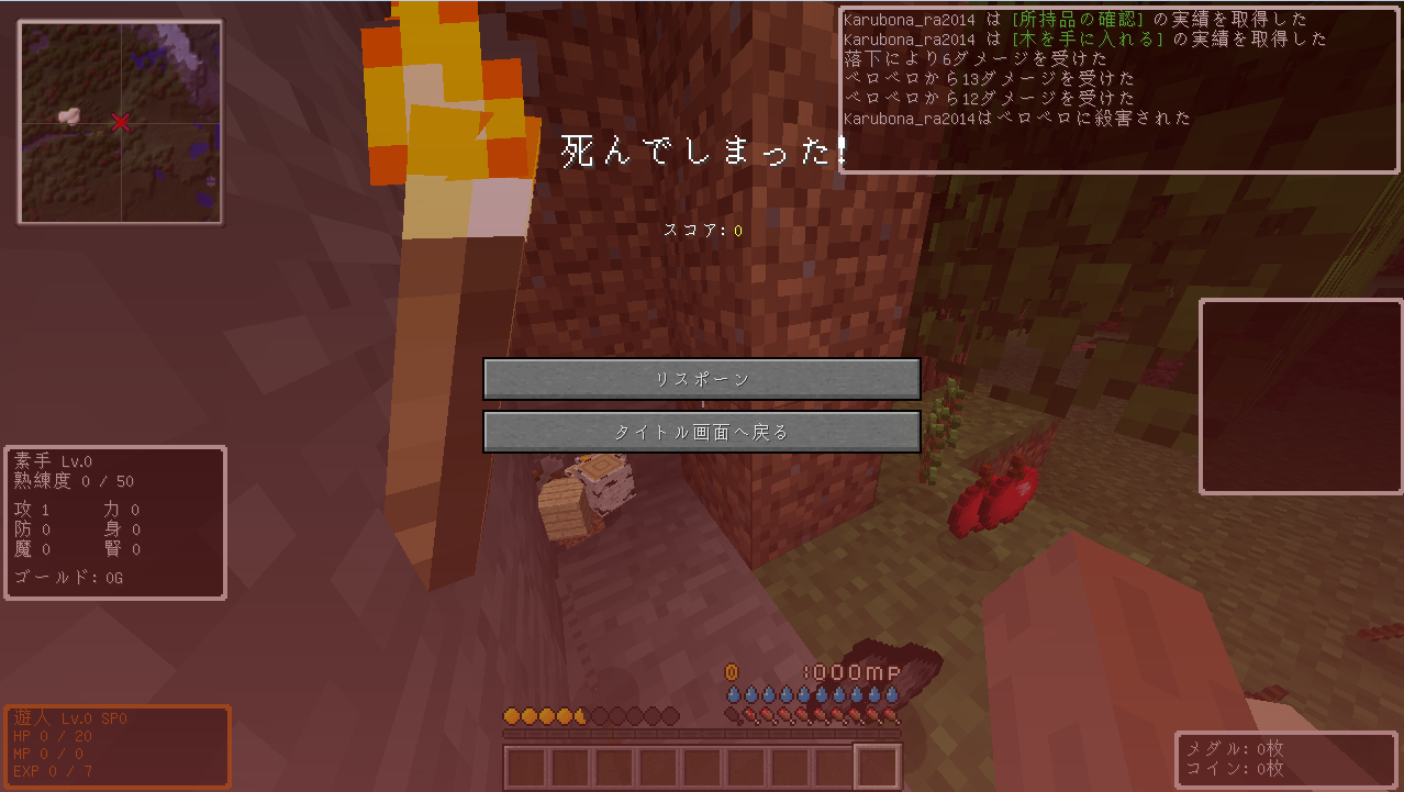 最初はプレイヤーが死にまくるのはもうデフォルト。HP20しかないのに遠距離の炎攻撃が30以上くらいますので、レベルが上がるまでは死んでは戦っての繰り返し。
