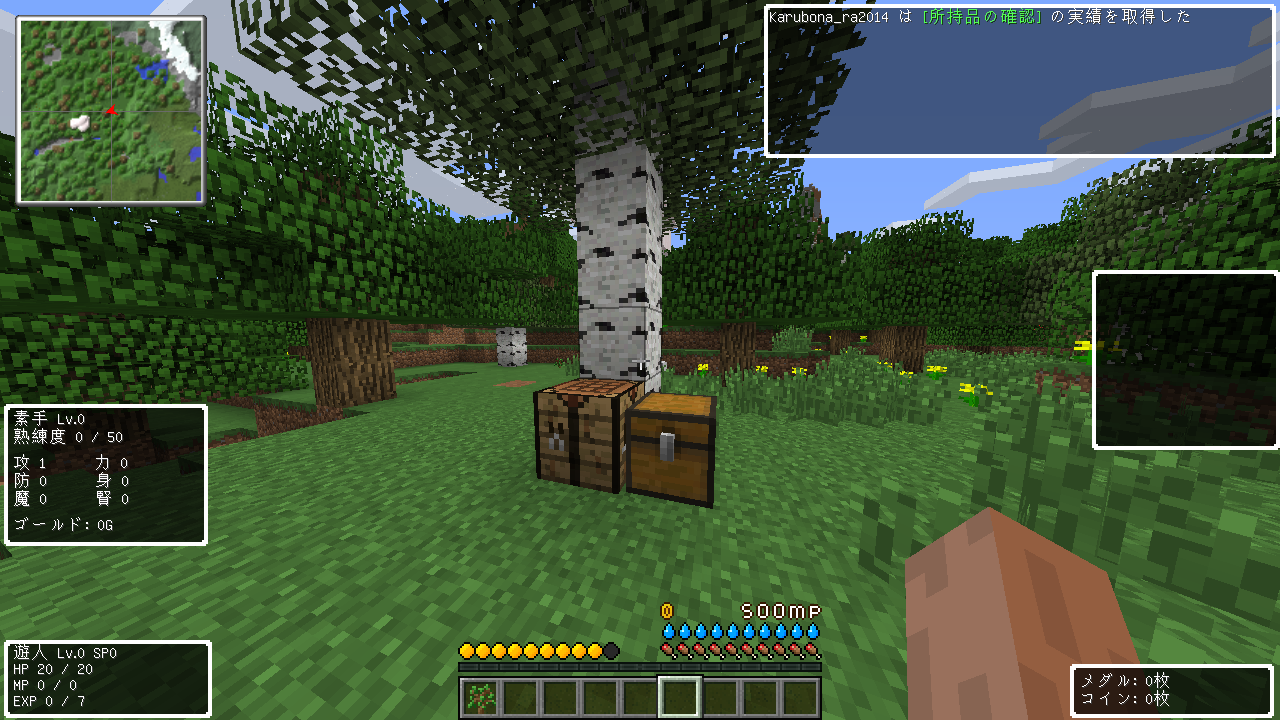 大事なアイテムを保管するため、簡単なチェストを置いてアイテムつっこむ。裸一貫できこりやら石の採掘やらします。