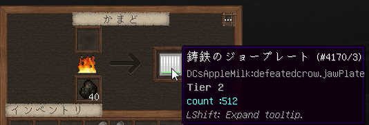 More Inventory Mod の機能を使ってアイテムの管理をしていこうと思います。
