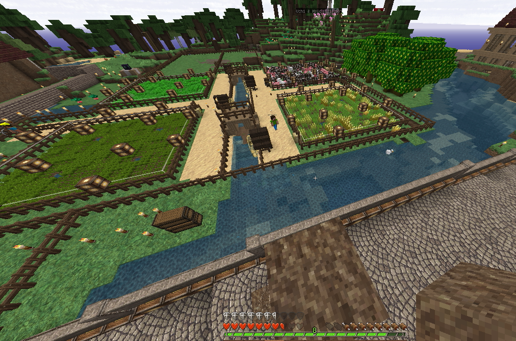 あとはパイプをCropFarmにつなげて完成。パイプは以前、似たようなModを入れていたので、勝手はわかりました。また、Iron Hammerを作って方向などの調節をします。