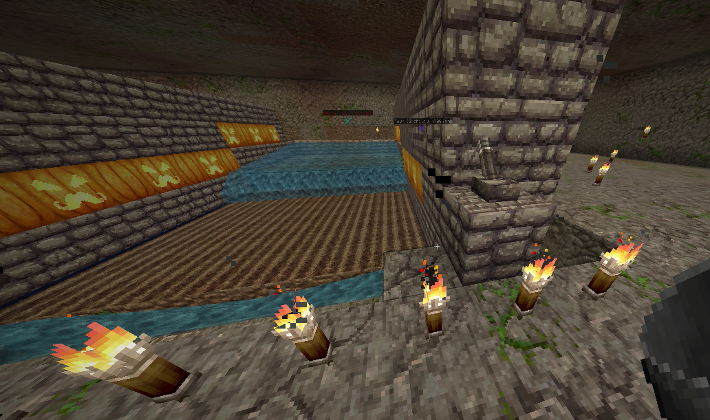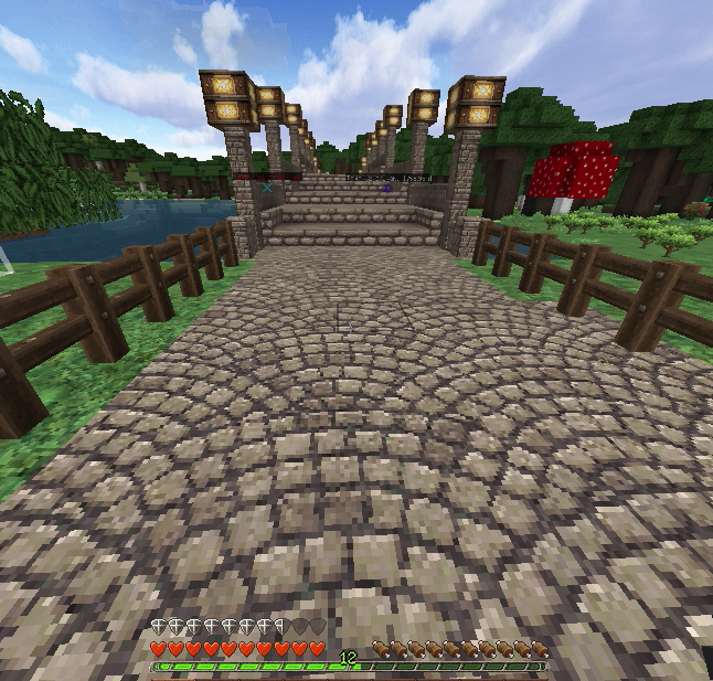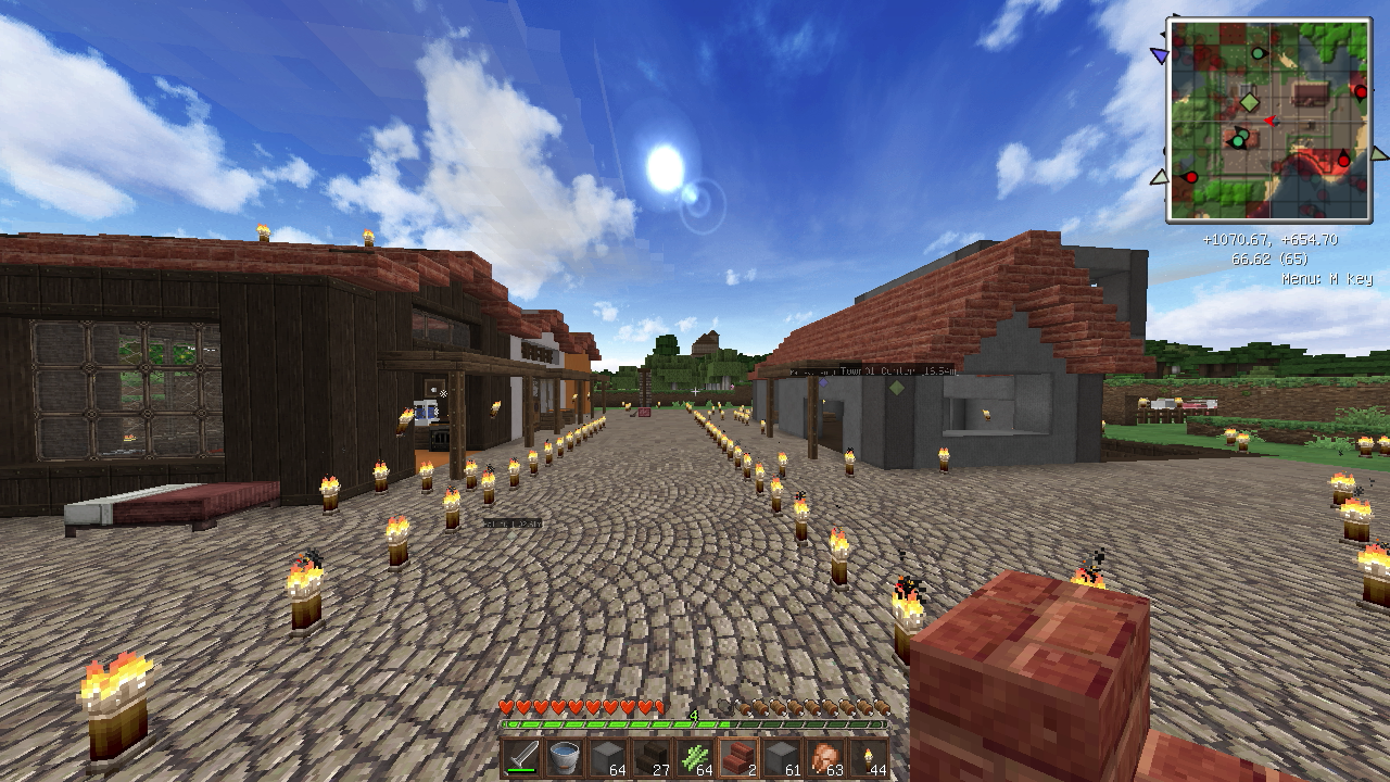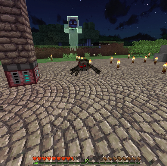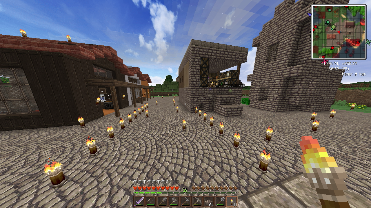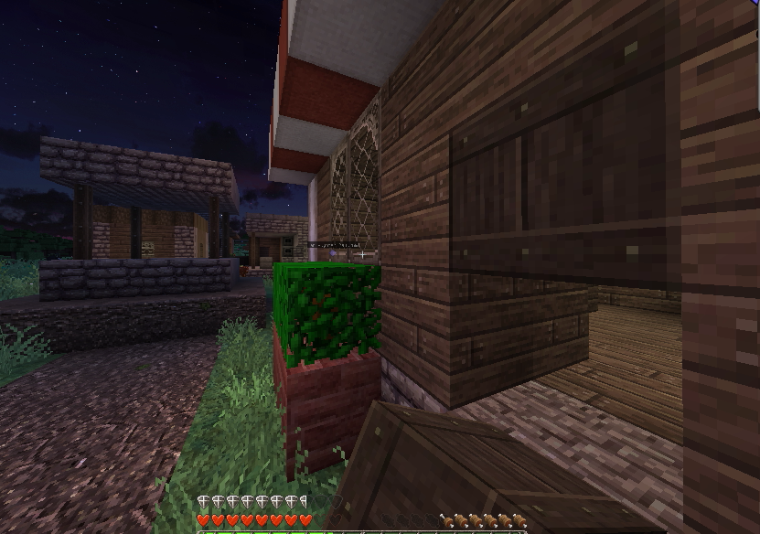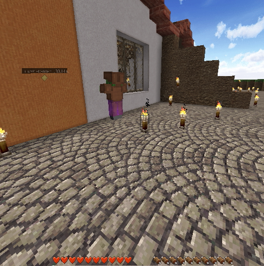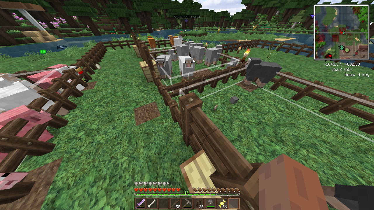 建築もひと段落し、そろそろ住人を増やしたいので、なんとかモンスター対策をしたいところ。とりあえず村人が活動するであろうエリアを柵で囲みました。