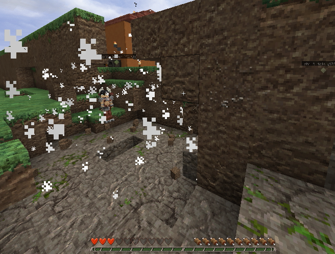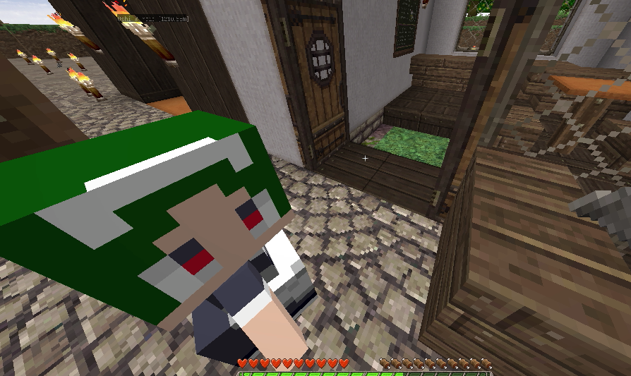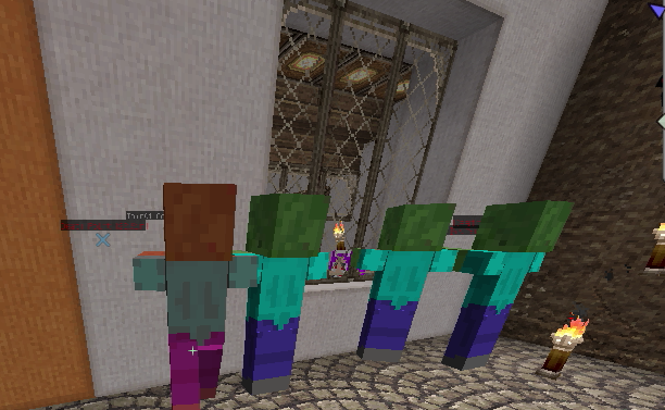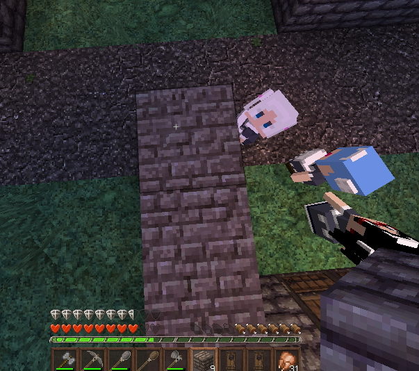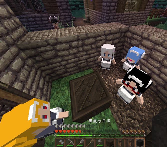 ゾンビがドアを叩いていたので店の前を土ブロックで封鎖して安全確保。