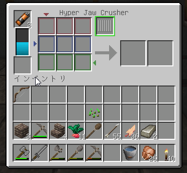 さらには画面右側、最初に作った自動収穫(予定)施設は、全く持って使わなかったです。ということで、これはのちのち撤去します。