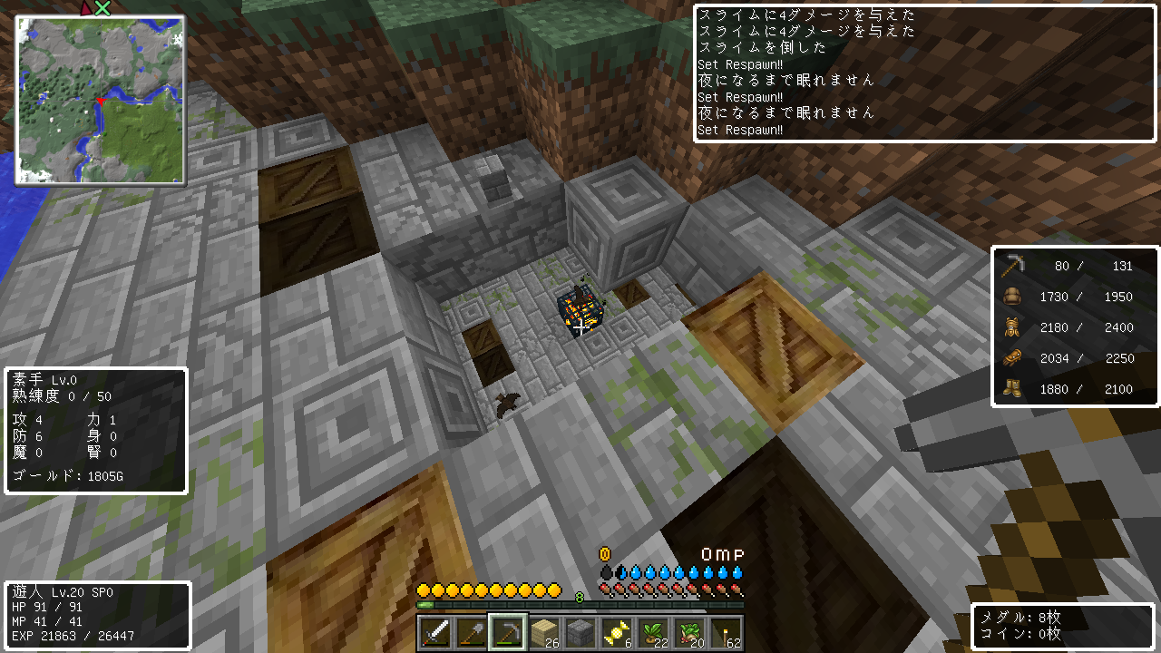 DQRが入っているので敵がすごい湧く = エンチャントレベルすぐ貯まる。