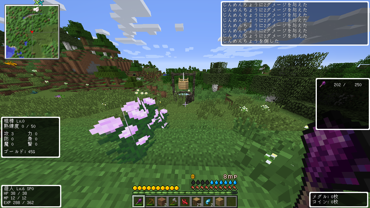 牧場はまだなので、とりあえず拠点に柵をつくって囲っておきました。