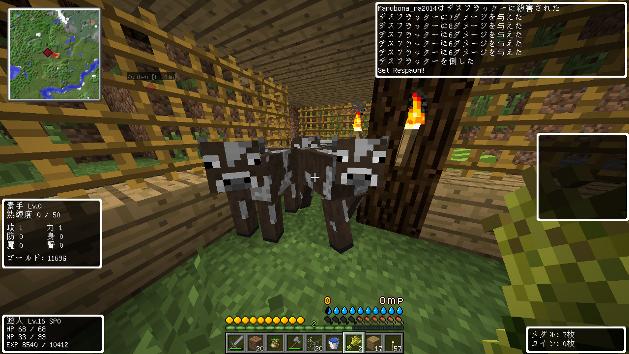 牧場をつくりながらちょくちょく小麦をあげてたので牛も増えてますね。