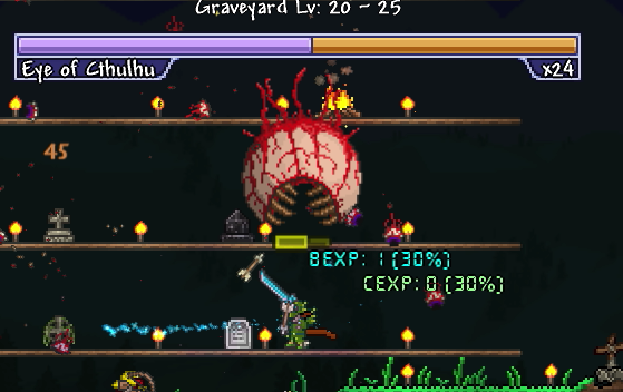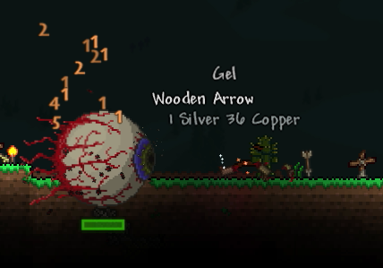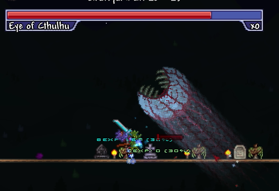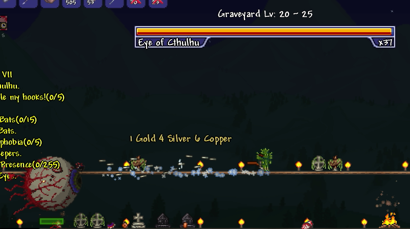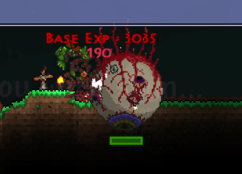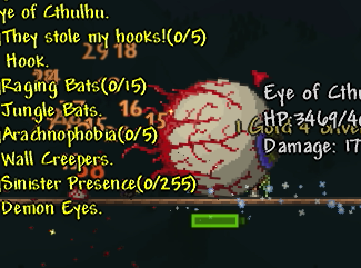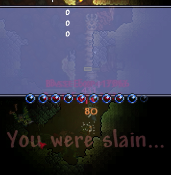 今の装備では目玉の攻撃一回で180のダメージを喰らいます。これは第一段階の時に出てくる小さい目玉も同じです。