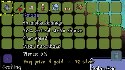初めて聞く武器でした、ダメージは108、Katanaは94なので攻撃力は高い、ノックバックも強い。