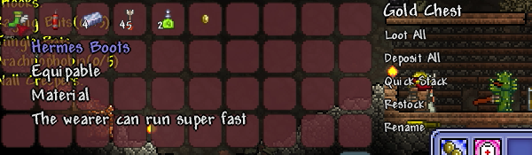 ヘルメスの靴は地下の宝箱にランダムで入ってます。