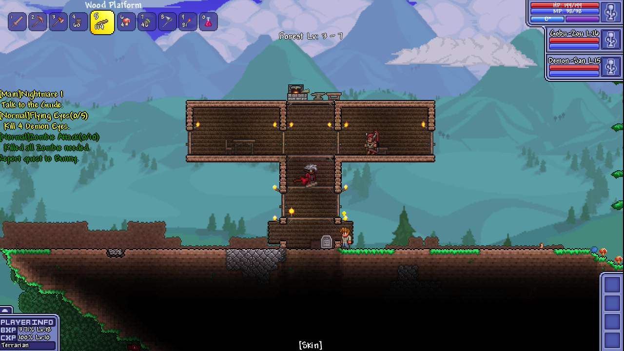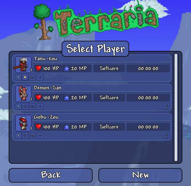 この3人で行きます。操作するのは一番上のタヌキ。最初から2段ジャンプ+壁すべりできます。