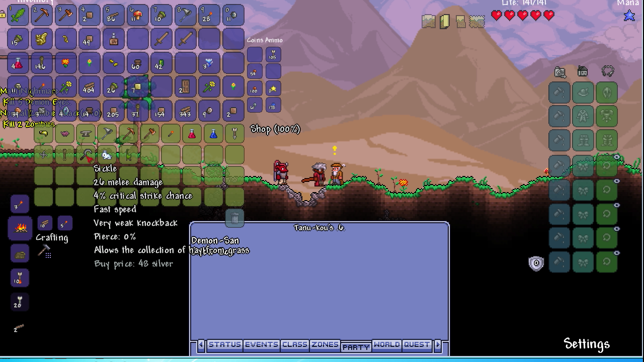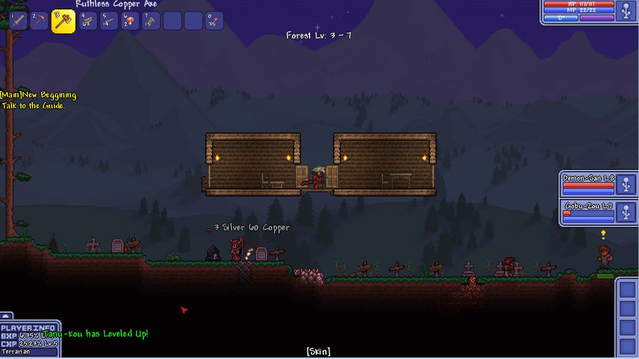 拠点近くに墓がたくさん並んでしまいバイオームが『Graveyard(墓地)』になっちゃいました。レベル20~25の強めのゾンビ達が大量に出てきます(通常だとレベル7~9くらい)。