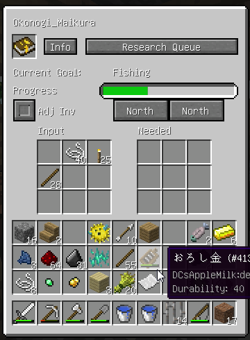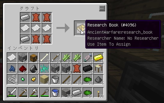 さてさて、Engineering の研究が終わったので、早速Ancient Warfare用の製造ができる作業台「Engineering Station」を作成します。