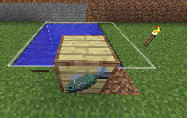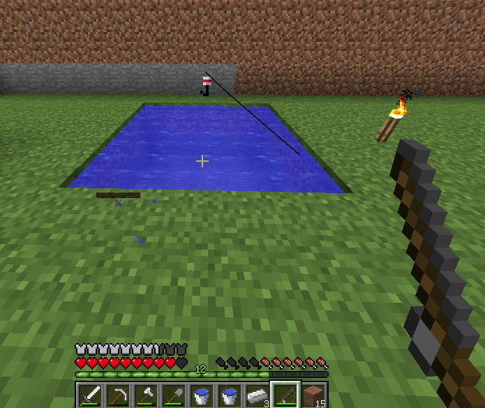 先ほど作った釣り堀に設置。これでここで自動的に釣りをしてくれます。