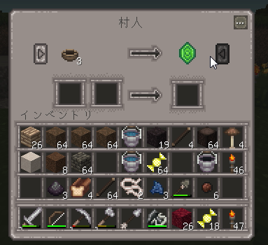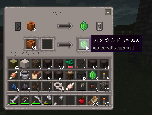 集めるのが簡単なアイテムが多く、エメラルド集めは比較的簡単ですね。ありがたい。