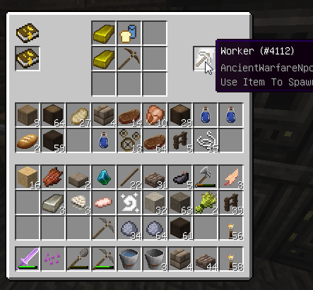 Worker召喚。今回は樵なので、斧を持たせます。