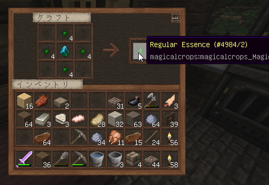 さて、地味に進めていたMagical Crops栽培ですが、やっと素材が揃い、次のEssenceであるRegular Essenceが作れるようになりました。