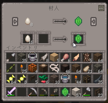 持ってた卵を全部エメラルドに変えました。