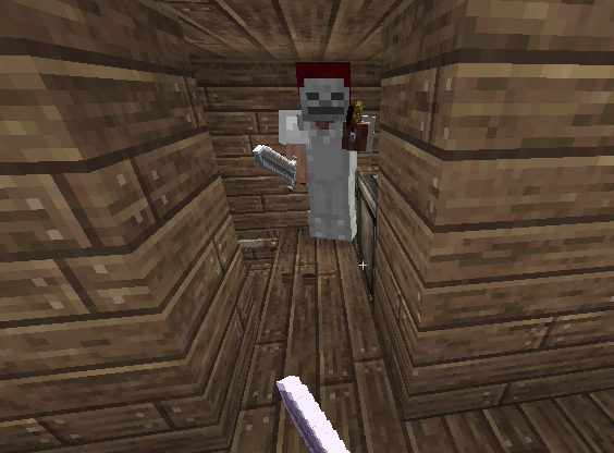 家の隅で埋まってて出られなくなったメイド村人のジャンボさん。