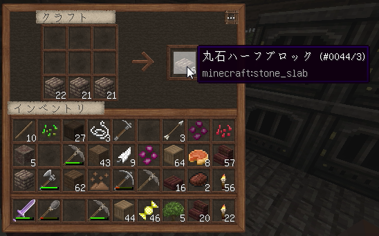 Halcyon Daysのリソースパックの丸石ハーフブロックは、石が扇型のような並びになっているのです。地面に使うとなかなかおしゃれ。
