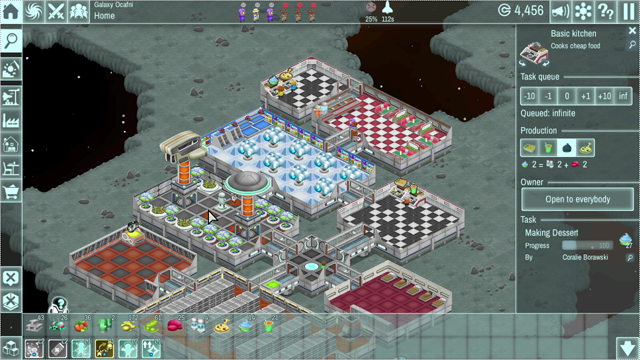 Reserch Pointとお金を使用して新しい技術を習得します。習得する事により新しい部屋やオブジェクトが置けるようになります。また、新しい部屋にあった消耗品(食事や土産など)も作成できます。