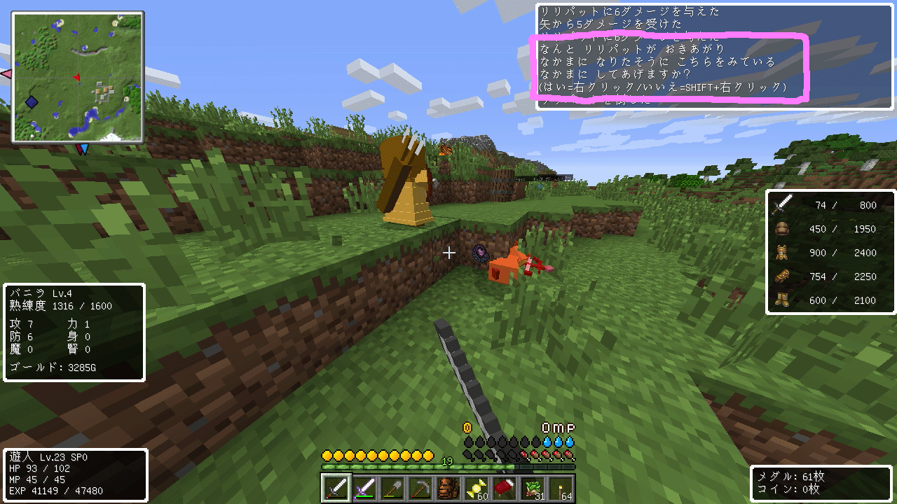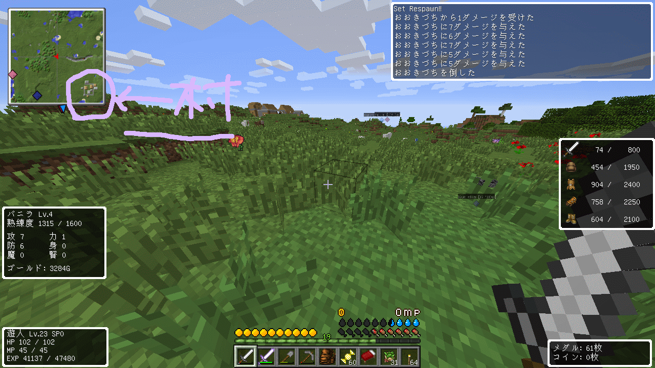 村によって居たり居なかったりなので、とりあえず到着した村はMinimapの座標登録しておきます。