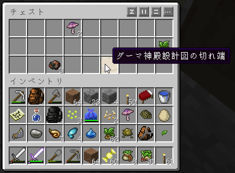 整地うんぬんでアイテムいろんなところに置いてしまったので、