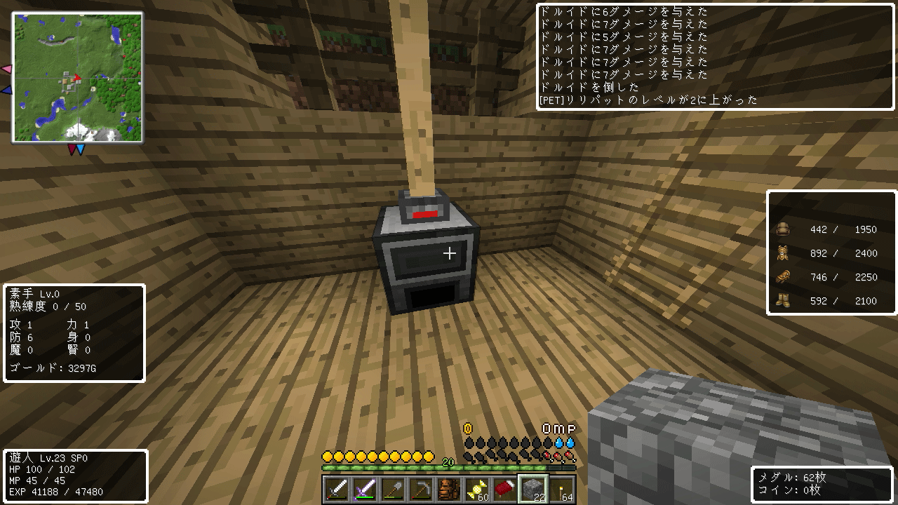 アイテムが大量に入るバッグを作ったので、少し遠めのところまで行けます。
