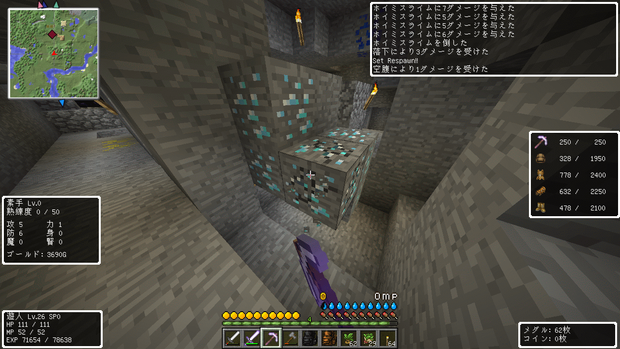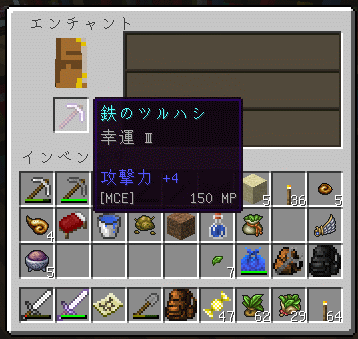 結構エンチャントし放題なので、ダイヤの少ない今は鉄で我慢します。