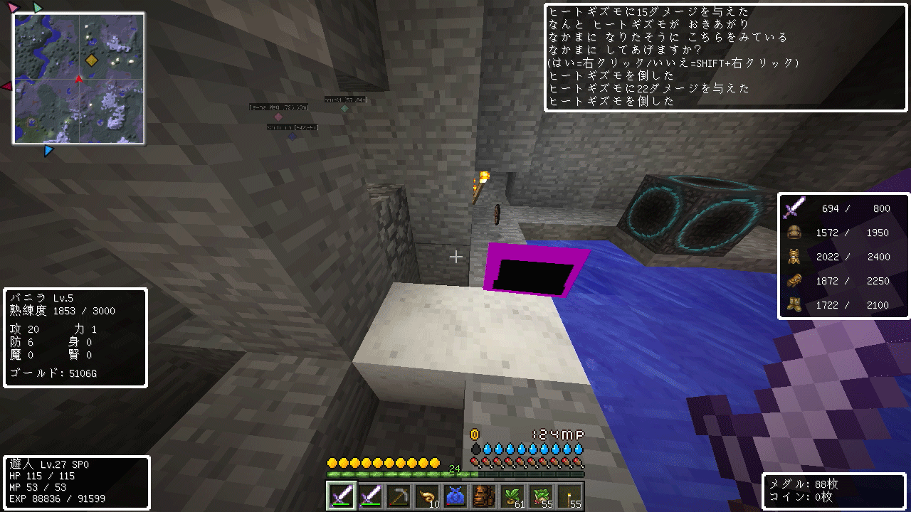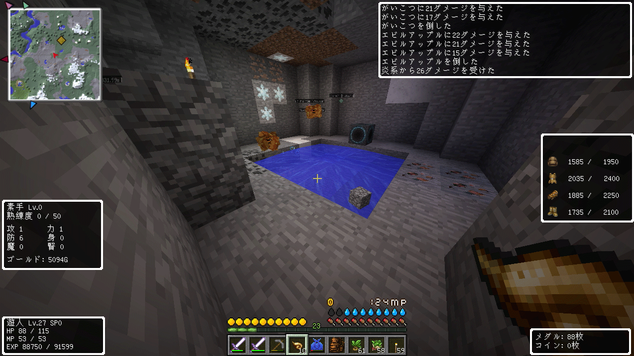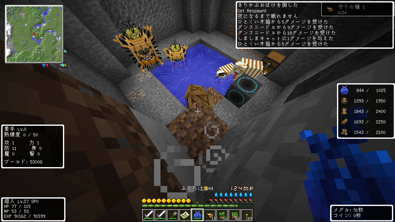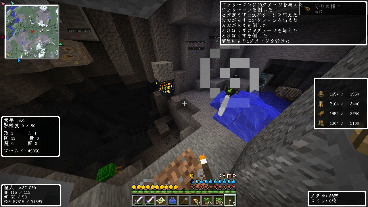 上の画像は今回2回目の井戸探索で、出てきたのはしびれくらげとももんじゃでした。