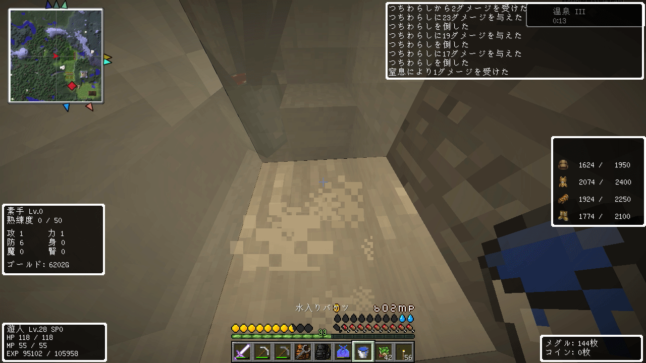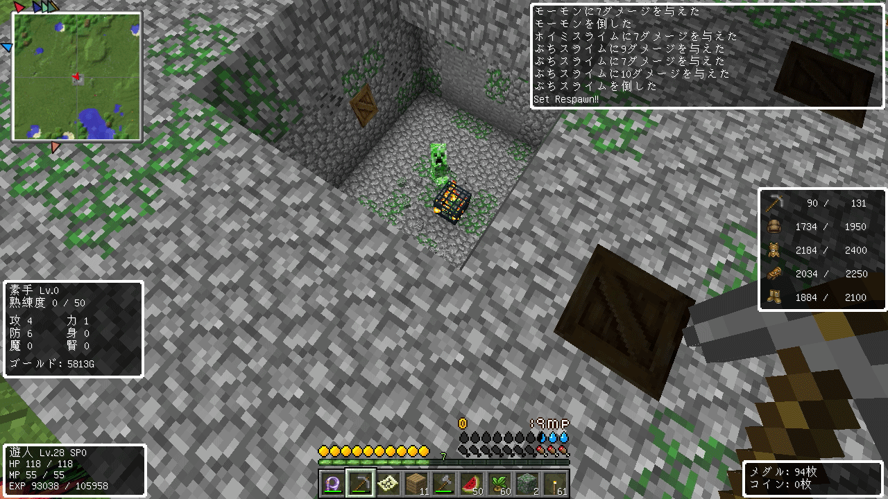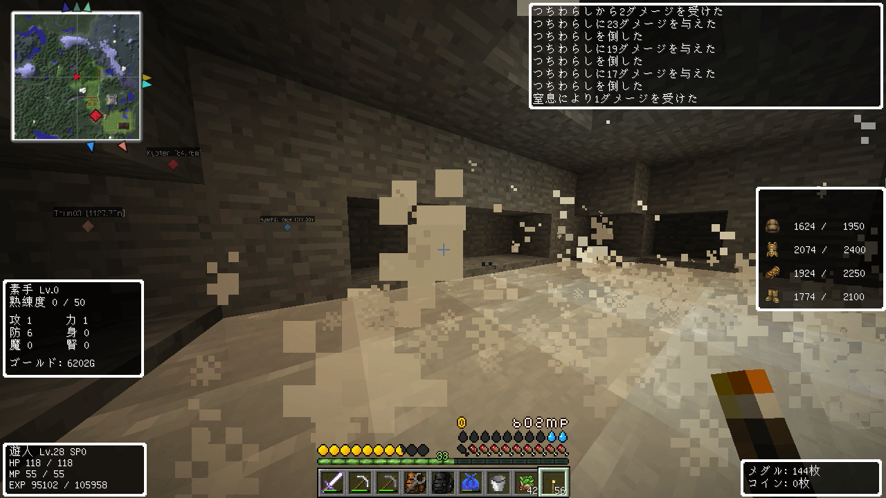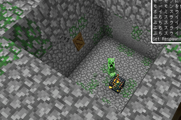 ちょっと見えにくいけど下の画像の真ん中、レンガでできているのでそこがスポーン部屋。